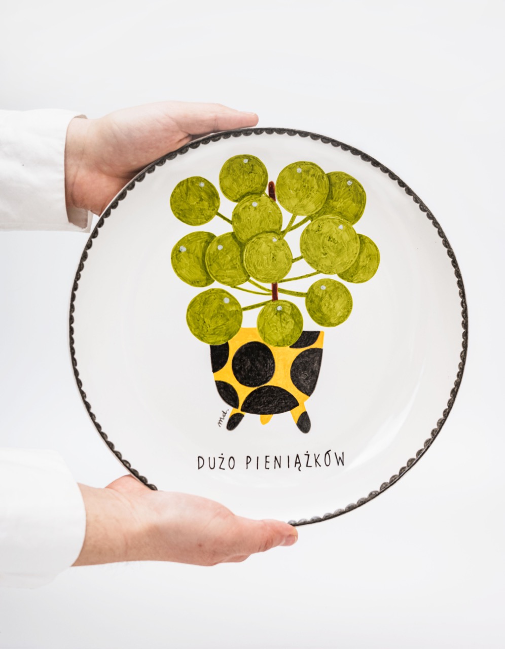Talerze, oprócz funkcji estetycznej, mogą pełnić również funkcję użytkową – posłużą one świetnie jako patery do słodkich lub słonych przekąsek. Jeśli zamówiony talerz ma być wyłącznie dekoracją – daj znać, a dołączę do niego haczyk, który pozwoli powiesić talerza w dowolnym miejscu.
